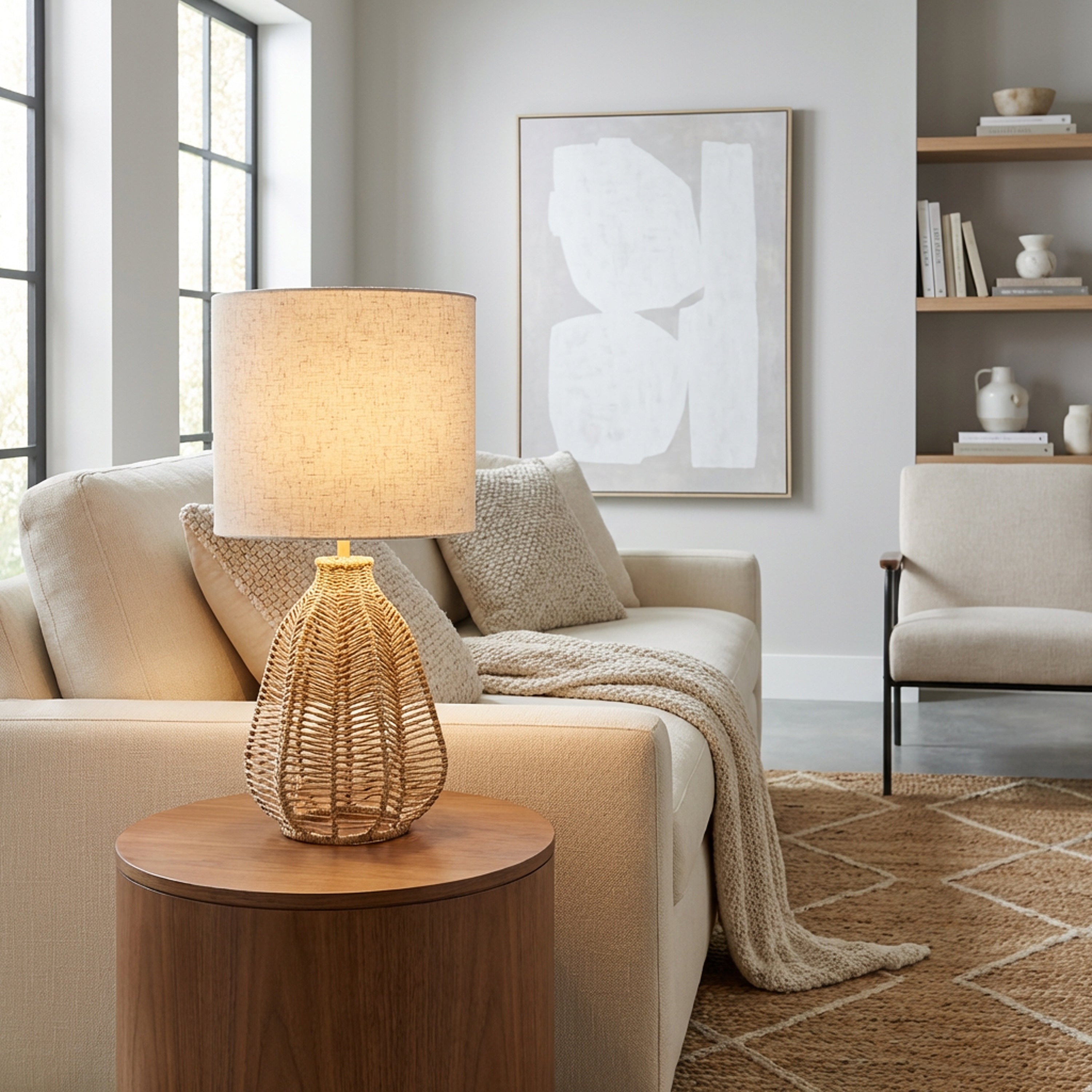 This table Lamp brings a breath of coastal design to your home. Crafted with woven natural brown paper rope over a sturdy wire frame paired with a beige linen drum shade, it delivers lasting performance with a natural finish. With easily accessible in-line switch on the 6 foot clear cord and an ETL listed socket, it’s designed for reliable everyday use. Pair with your preferred medium base bulb to customize brightness and ambiance.